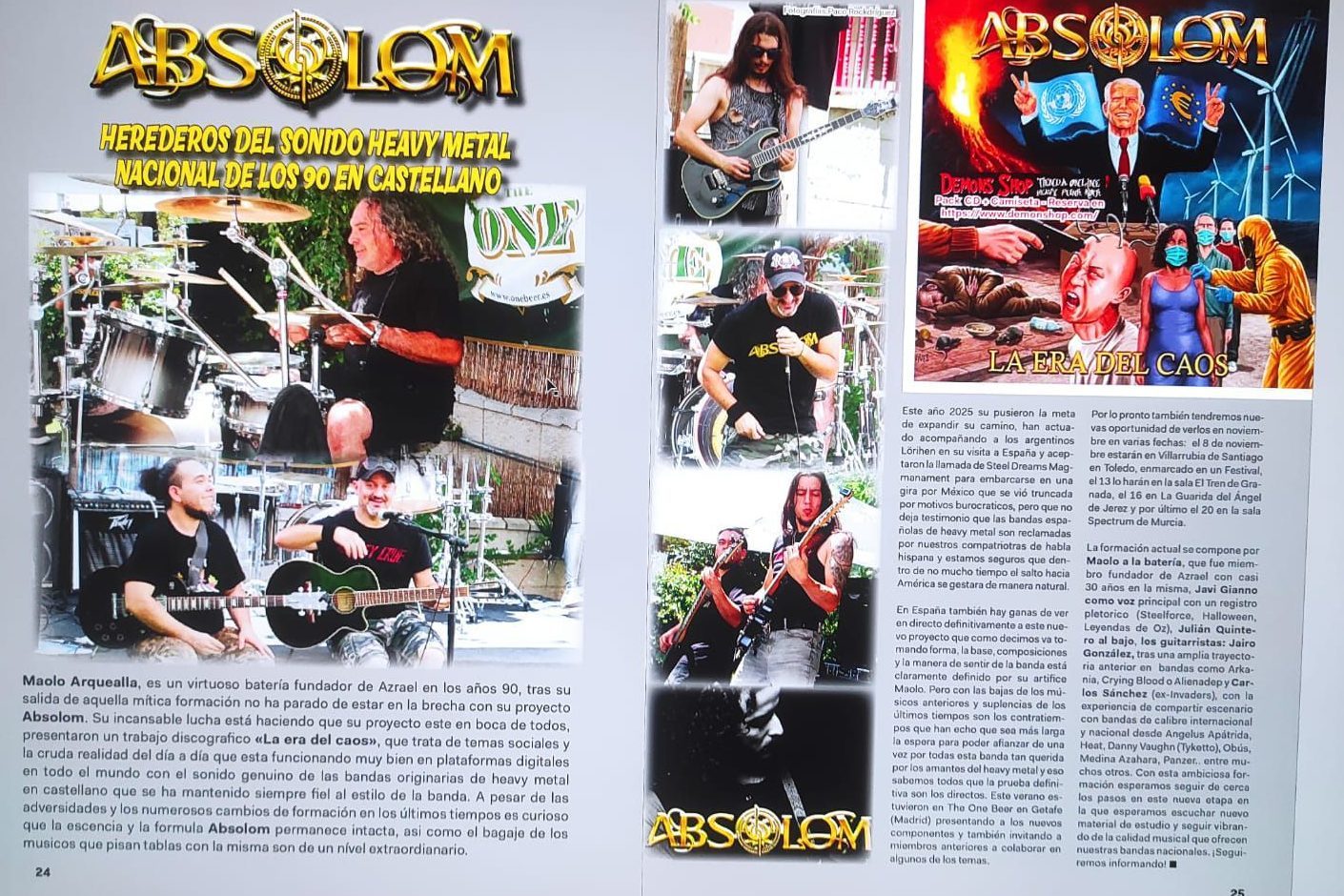 En 2022 se produce un cambio de vocalista: José Varela deja la banda y José Cebrián regresa para ocupar el puesto. Ese mismo año Absolom presenta adelantos del álbum que se espera como su debut oficial: “La Era del Caos”. En torno a ese material también surgen colaboraciones con músicos nacionales como Alberto Rionda (de Avalanch) para el tema “Nuevo Camino”.