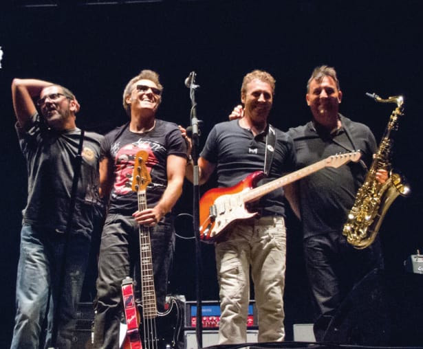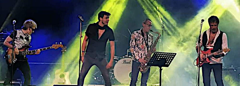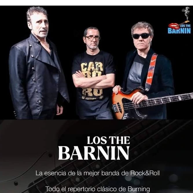 Concierto de Burning: Kacho Casal (batería), Carlos Guardado (Bajo), Mikel Slingluff( Saxo) y Eduardo Pinilla (guitarra) Miembros de Burning de los últimos 40 años. 4 de 5 componentes oficiales que ahora se presentan bajo el nombre «LOS THE BARNIN».